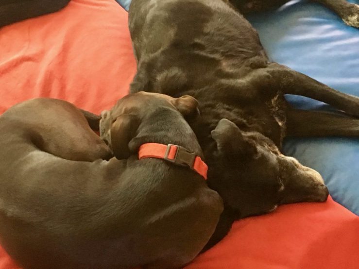 1. haha – they are labrador mixes & they are on their own dog cushions. they don’t get on my bed otherwise I’d never get any sleep LOL