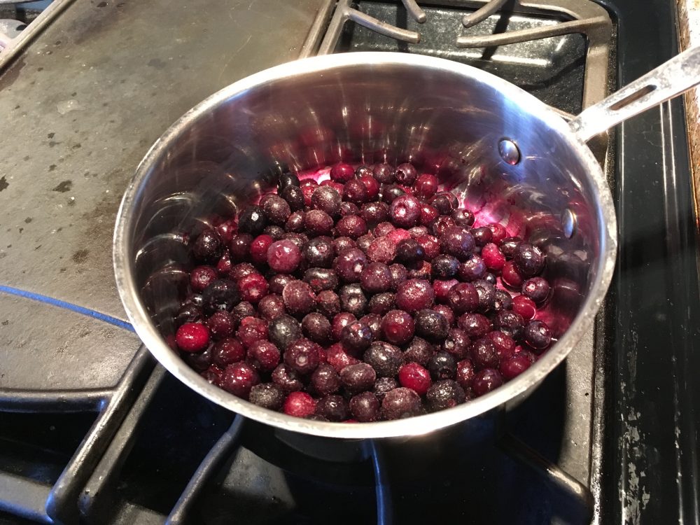 2. Cook the berries on low heat to reduce the juice out of the fruit for about thirty minutes.