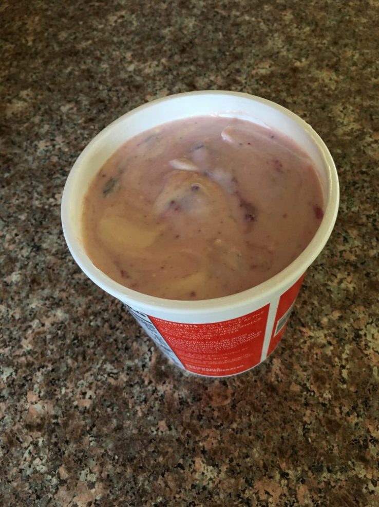 Step 4: Use the yogurt container to freeze the total mix in. On colder days, it tastes amazing at room temperature, too!