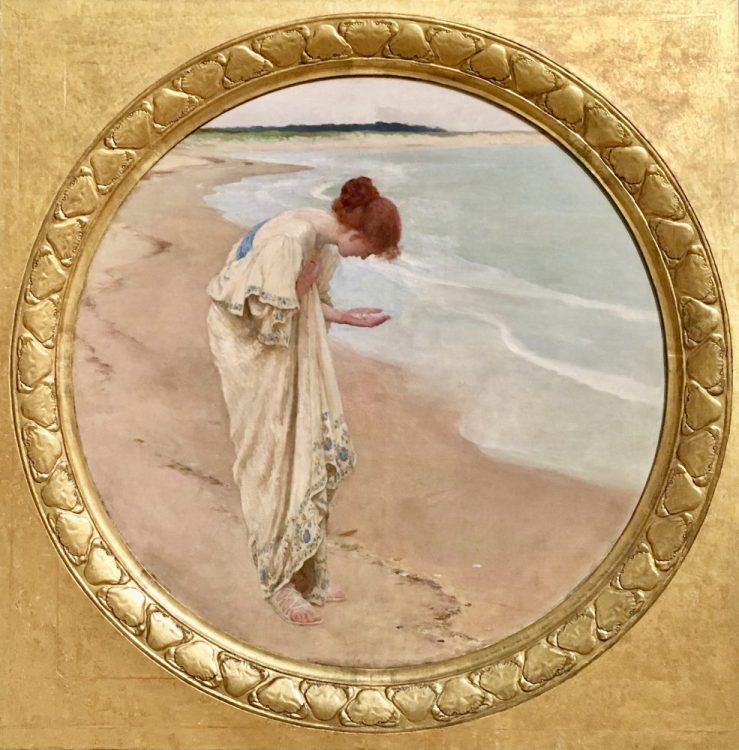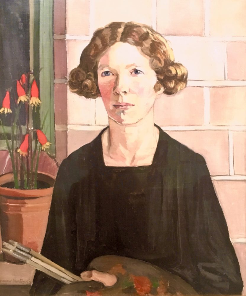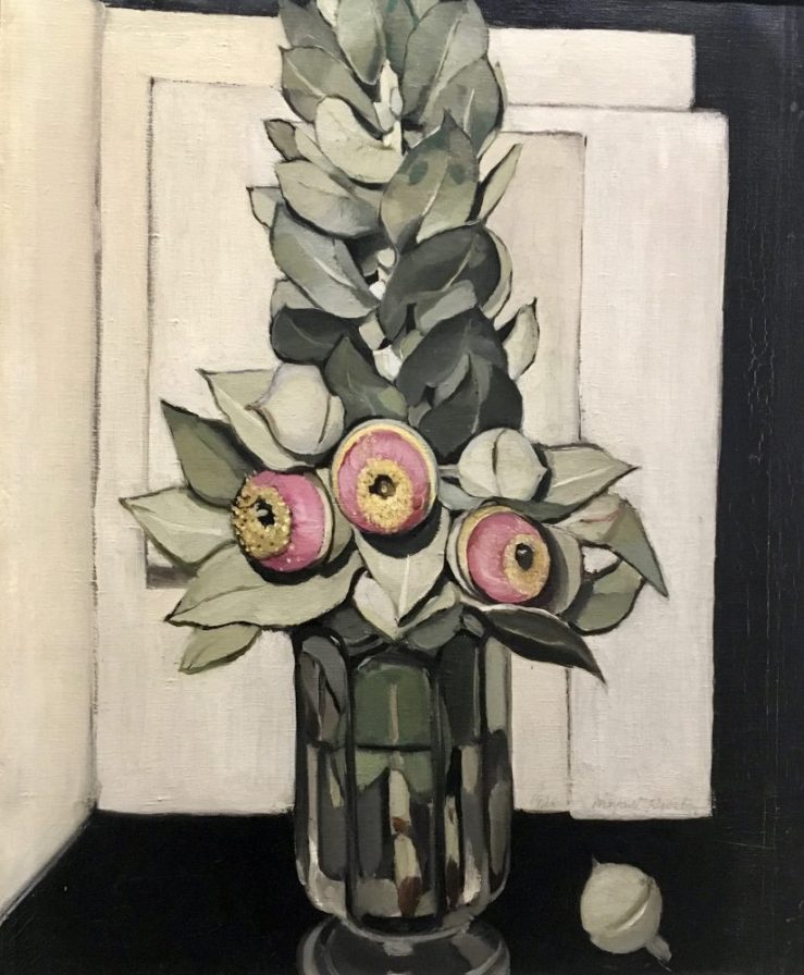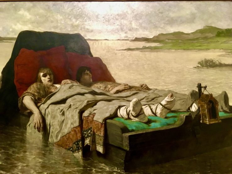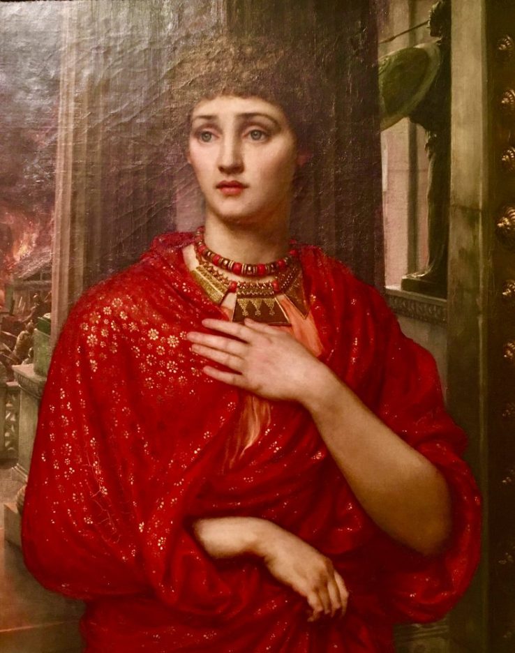 Self-portrait by Margaret Preston of Australia, 1930.“Western Australian gum blossom,” by Margaret Preston of Australia, 1928.“Helen,” by Edward John Poynter of England, 1881 (Helen of Troy was a great beauty — the sitter for this is actress Lillie Langtry.)“The sea hath its pearls,” by William Henry Margetson of England, 1897 (he did the frame too!)“Study of a head: still as a bud whose petals close,” by Edward Onslow Ford of England, 1895.“The sons of Clovis II,” by Évariste Luminais of France, 1880 (Interesting signage explains: “The rebellious sons os the7th-century Merovingian King of France, Clovis II, were punished by their mother who ordered them to be hamstrung and set adrift on the river Seine.”)“The warrior, from the series Mubarizun – no more,” by Adeela Suleman of Pakistan, 2014.My husband, as you can see, took some liberties as a photographer.