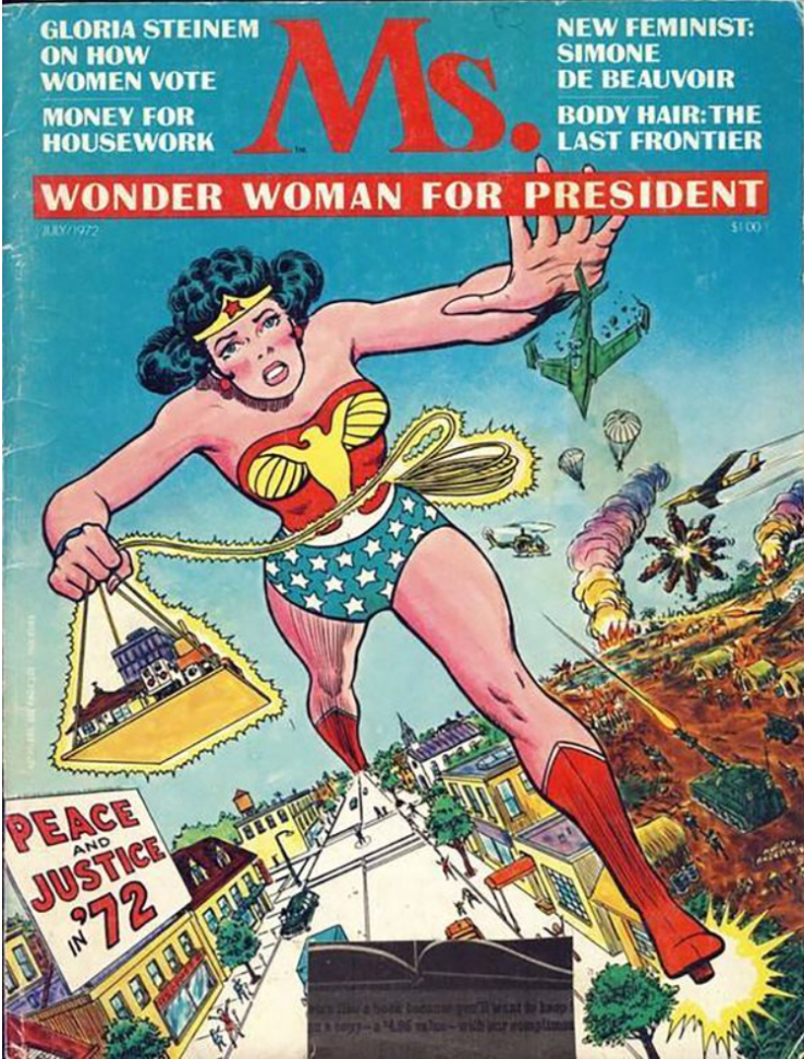 Did feminist magazines exist before she co-founded Ms. in 1972? Surely none sounded as loud a gong as Ms. continues to resound today. Did you know that the first Wonder Woman comics endowed the character with grit and superpowers that they later revoked? Thanks to Steinem’s re-empowered Wonder Woman gracing an early Ms. cover, the comic book publishers restored the character’s heroine status!