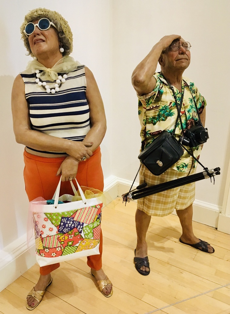 Not all that very long ago, in pre-pandemic Scotland, I was pleasantly reacquainted with a couple of fellow Americans, both of them artists. Remember Cabbage Patch Kids (o-m-g!!! I just Googled them — they’re still manufactured!?)? The dolls, IMHO vomitous as they are, remind me of Duane Hanson’s art, who respect tremendously. He started as overtly political. Later he segued into depictions of sorely neglects folks and subjects, this way and this way. His life-casts here are portrayed as a couple, yet in real life they never met. Incorrigibly Floridian, they stand out in Edinburgh…