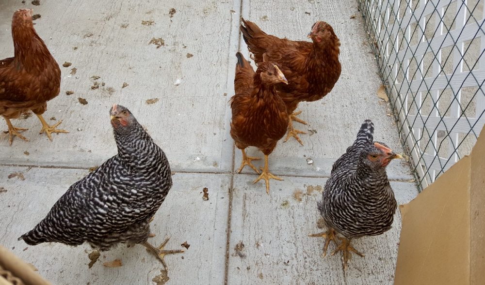 When Pepa was gone, Cousin Ana got 5 baby chicks. Here they are, 3 months old now! Surprise, one is another rooster…