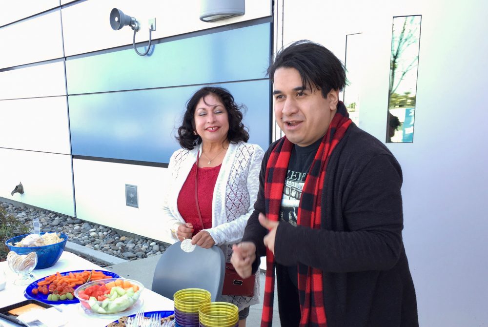 Pat Hyde and Brian Temp at Bravura art show for Cerritos College.